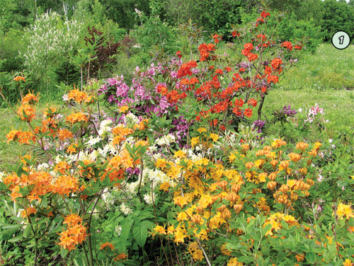 Не будем вдаваться в описание видов, скажем только, что на фото 2, 3 и 6 - вечнозеленые рододендроны, все остальные - листопадные. Как видите, и те, и другие обильно цветут и выглядят прекрасно.